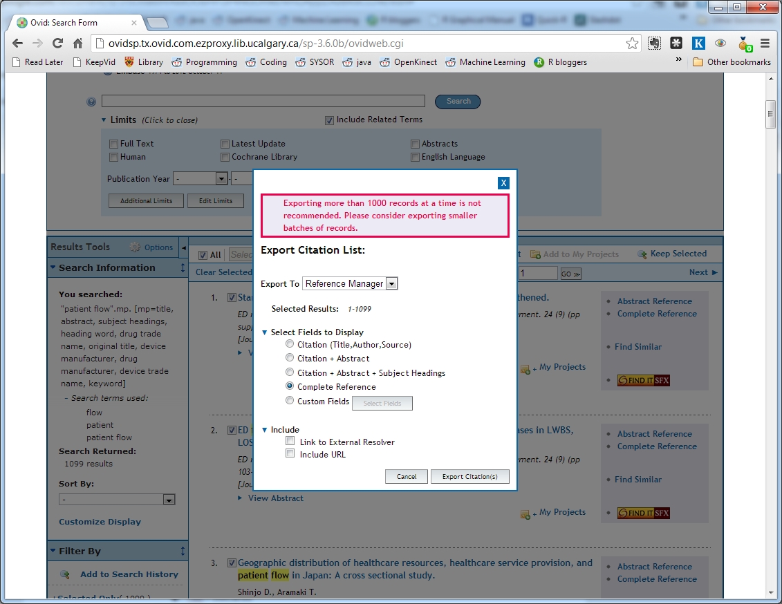 - Under Results Tools click on the All checkbox in order to select all references to export